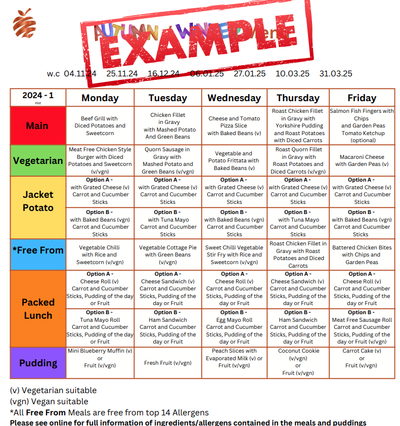 Our meals are provided by Kingswood Catering, a trusted company that offers a variety of delicious and nutritious options. They cater for a range of dietary needs, including vegetarian and allergen-free meals. We are very fortunate to have such a wonderful selection of hot dinner options available to our pupils with thanks to Kingswood.