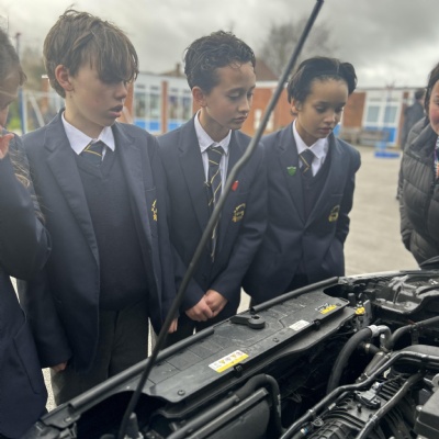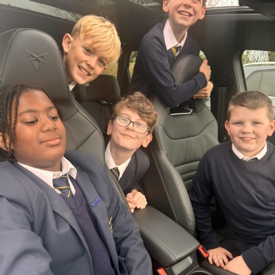 On our Inspire day, a car group called Volkswagen came into school. They are made up of the following car brands: Volkswagen, Audi, Seat, Cupra, Skoda and Volkswagen Commercial vehicles. We explored some of these car's engines and their parts. One of the best parts was being able to go inside the cars and put our heads out of the sunroof of the Cupra! All classes learnt how to know if a car is electric or not. If a car has a green stripe on its number plate or if it has no exhaust pipes it is electric.